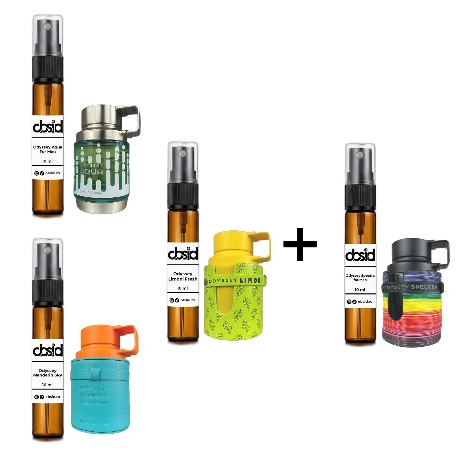 Descoperă colecția Odyssey - set de 4 decanturi premium 10ml.