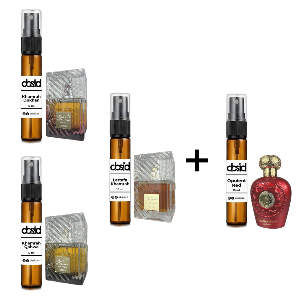 Descoperă colecția Khamrah - set de 4 decanturi premium 10ml.
